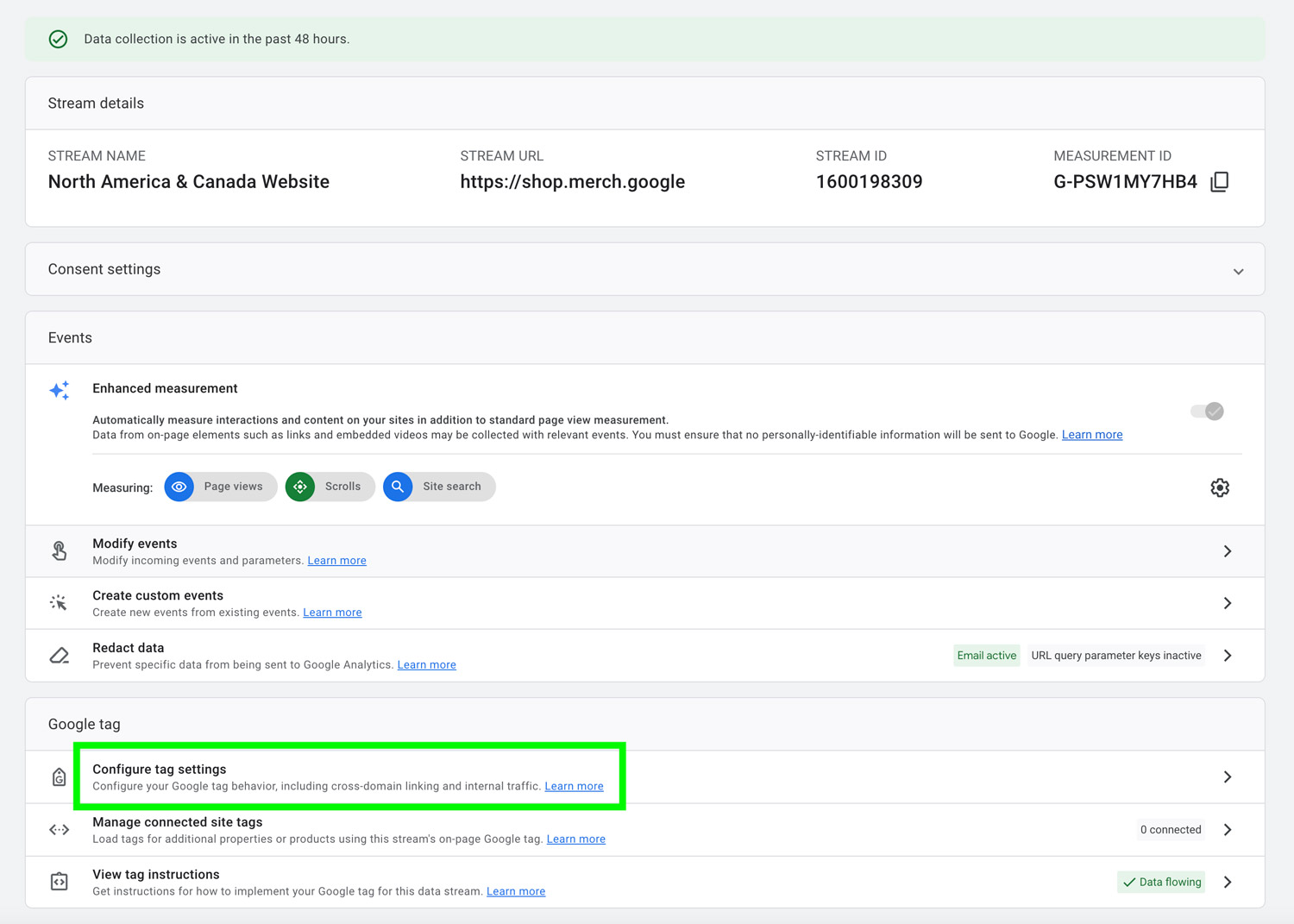 Go to Admin > Data Streams > Select a Data Stream