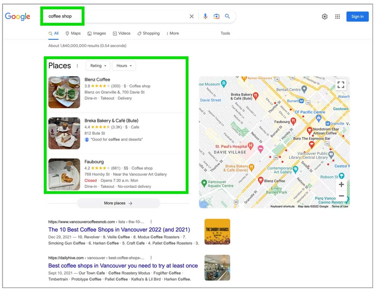 For example, if you were in Vancouver and searched for “coffee shops,” Google would still display a local pack for Vancouver tattoo shops.